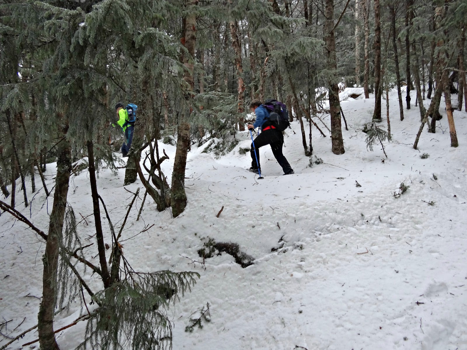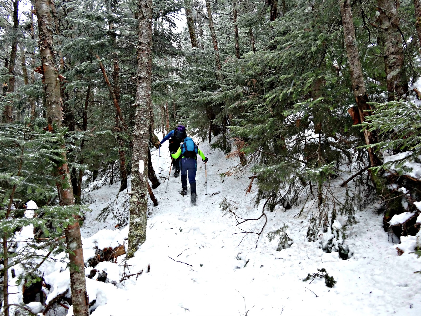 As we climbed, the trail began to steepen and get rather slick. Microspikes are definitely useful for the Glencliff trail in winter.